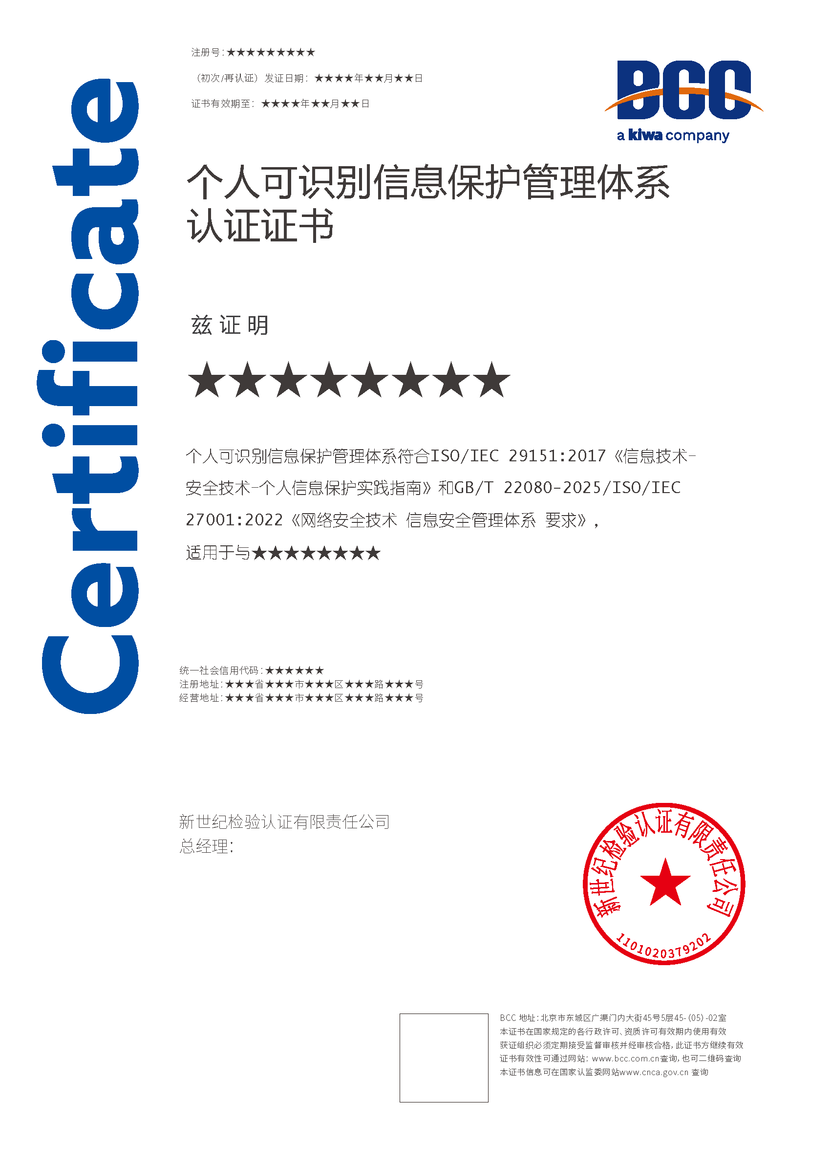 本頁(yè)涉及的認(rèn)證服務(wù)中均有對(duì)應(yīng)的《認(rèn)證實(shí)施規(guī)則》,BCC擁有其最終解釋權(quán)。任何組織及個(gè)人未經(jīng)BCC許可,不得以任何形式全部或部分使用(法律要求除外)認(rèn)證相關(guān)信息。如需獲取相關(guān)實(shí)施規(guī)則請(qǐng)用以下方式聯(lián)系獲?。弘娫挘?10-58579316 郵箱:fwjs@kiwa.cn