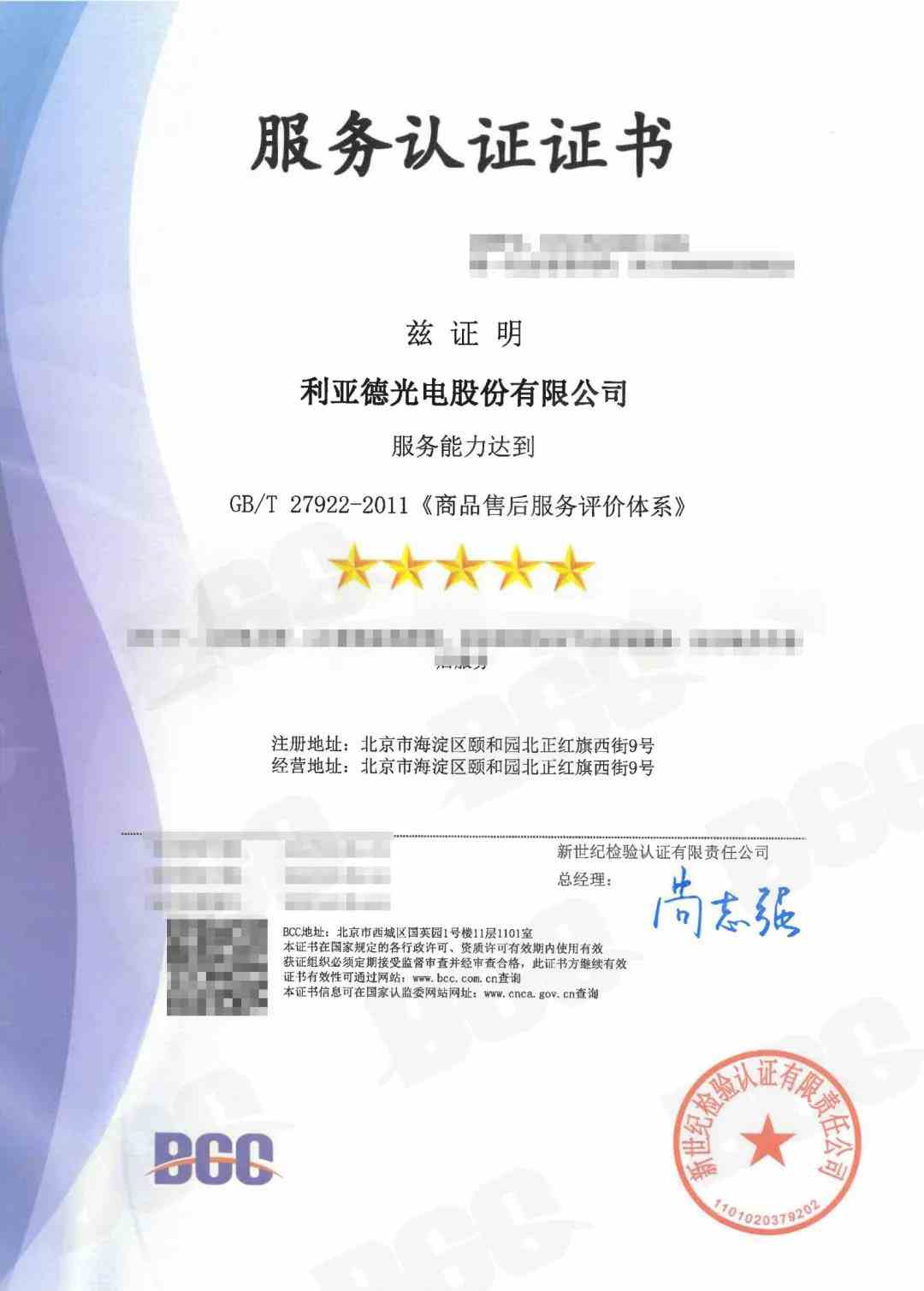 利亞德秉持“高品質(zhì)、優(yōu)服務(wù)、重誠信、盡職責(zé)、服務(wù),一切讓顧客滿意”的經(jīng)營理念,不斷提升企業(yè)的產(chǎn)品質(zhì)量和服務(wù)質(zhì)量,以優(yōu)質(zhì)服務(wù)能力獲BCC頒發(fā)的商品售后服務(wù)認證五星證書,為未來進軍家電市場的戰(zhàn)略布局奠定了堅實基礎(chǔ)。