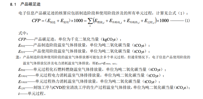 《電子信息產品碳足跡核算指南》規(guī)范了電子信息產品碳足跡核算的目標、核算范圍、功能單位、系統(tǒng)邊界、數(shù)據(jù)收集與處理、核算、報告等內容,并在附錄中給出了相關參數(shù)推薦值以及電子信息產品碳足跡核算的報告及示例等。