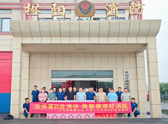 為深入貫徹落實(shí)習(xí)近平總書記關(guān)于雙擁工作的重要指示精神,深化“擁軍優(yōu)屬 擁政愛民”工作實(shí)效,大力營(yíng)造擁軍、愛軍、崇軍濃厚氛圍。值此“八一”建軍節(jié)來臨之際,江北港鐵路專用線公司黨支部聯(lián)合中鐵十六局江北港鐵路專用線項(xiàng)目部走進(jìn)樅陽縣消防救援大隊(duì)橫埠政府專職消防隊(duì),開展“八一”擁軍慰問活動(dòng),為消防指戰(zhàn)員們送去關(guān)懷。
