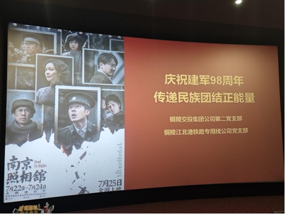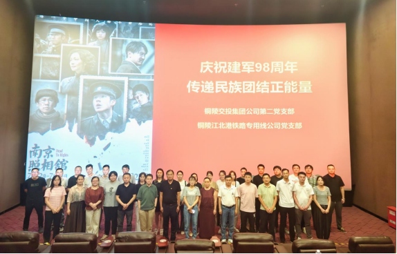 為進(jìn)一步加強(qiáng)黨性教育,傳承紅色基因,8月28日,銅陵江北港鐵路專用線公司黨支部聯(lián)合銅陵交投集團(tuán)公司第二黨支部開展“慶祝建軍98周年 傳遞民族團(tuán)結(jié)正能量”紅色觀影《南京照相館》主題黨日活動(dòng),通過(guò)沉浸式觀影體驗(yàn),引導(dǎo)黨員干部銘記歷史、砥礪初心。